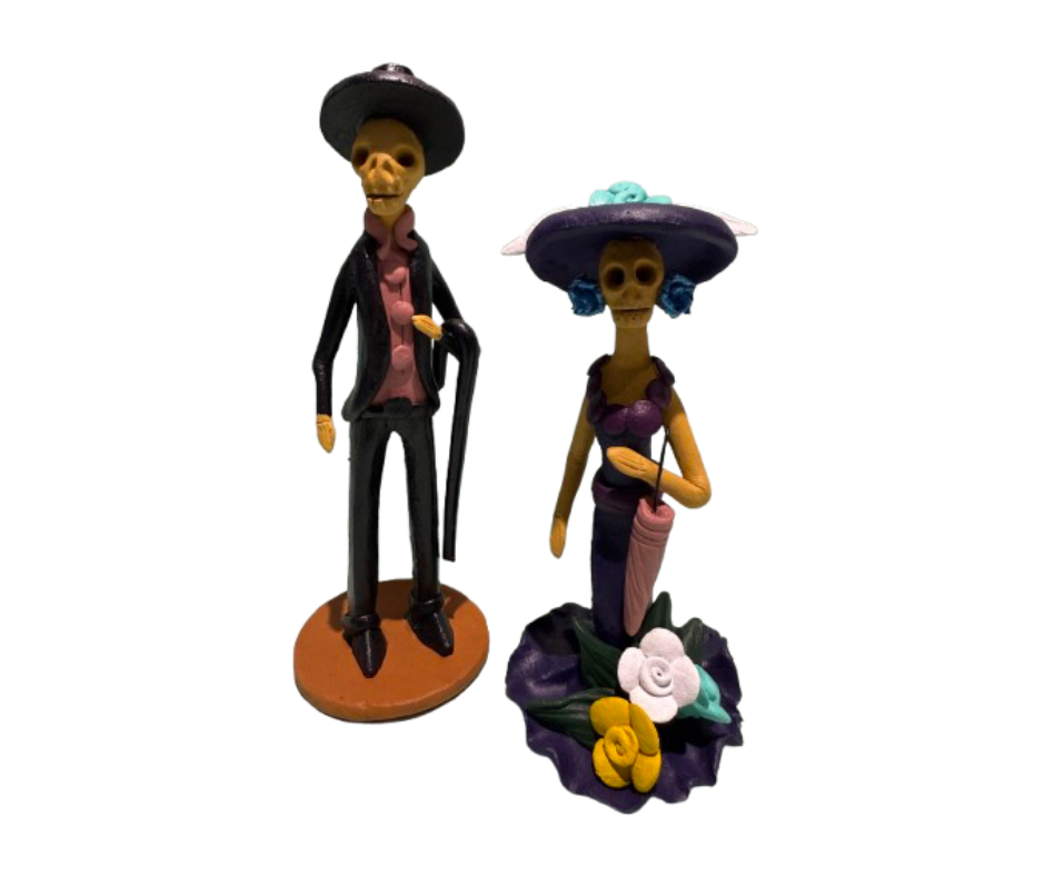 Catrin (wacho) y Catrina Garbancera, trabajo hecho a mano del municipio de capula