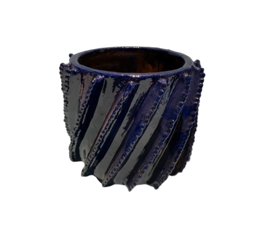 Maceta hecha a mano , trabajo hecho a mano, trabajo de punto en espiral.